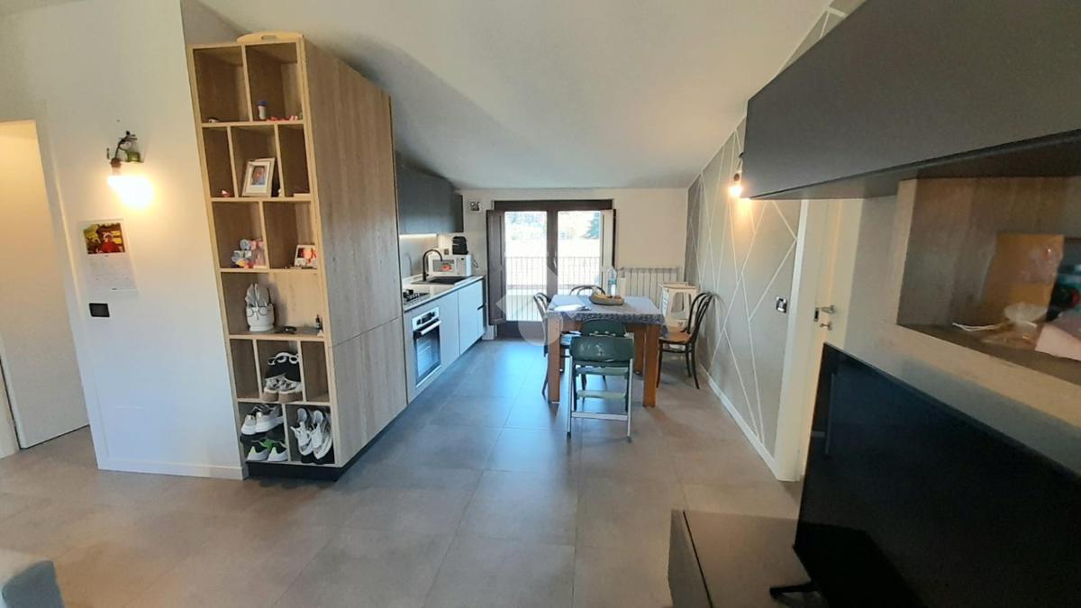 Inverigo: In contesto di recente realizzazione ampio ultimo piano mansardato con doppi servizi composto da soggiorno con cucina a vista, 2 balconi, camera principale, studio attualmente adibito a camera ulteriore locale ripostiglio/hobby finestrato, predisposizione condizionatori ed impianto d'allarme. L'immobile è servito da comodo ascensore. Il box singolo al piano interrato completa l'abitazione. Possibilità acquisto arredo moderno presente. APE IN FASE DI RICHIESTA